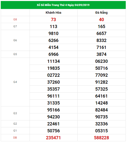 Dự đoán thống kê kết quả xổ số Miền Trung thứ 4 ngày 18/9/2019 với các mục chốt số đầu, đuôi giải đặc biệt, kết quả giải 8, lô tô 2 số của tỉnh Đà Nẵng, Khánh Hòa.