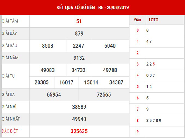 Dự đoán thống kê xổ số Bến Tre thứ 3 ngày 27/08/2019: