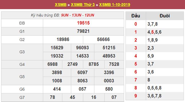 Thống kê kết quả xổ số loto miền bắc hôm nay ngày 2/10/2019:
