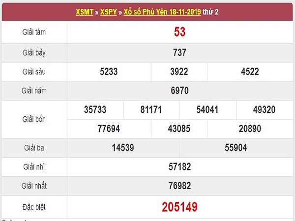 Dự đoán thống kê kết quả miền trung đài Phú Yên thứ 2 ngày 25/11/2019 với các mục chốt số đầu, đuôi giải đặc biệt, kết quả giải 8, lô tô 2 số của tỉnh Phú Yên với tỷ lệ trúng cao.