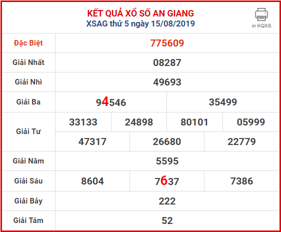 Thống kê kết quả An Giang ngày 15/8/2019: