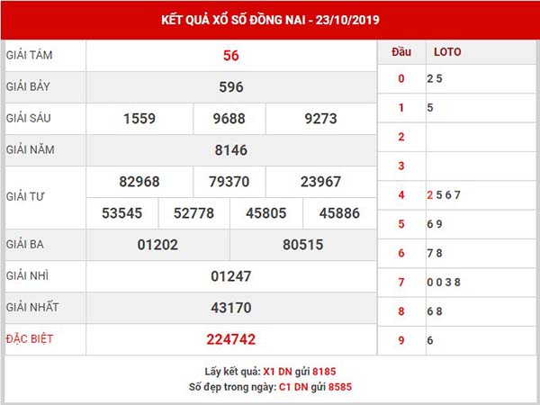 Thống kê sơ bộ bảng Xổ Số Đồng Nai thứ 4 ngày 23-10-2019 để có được thêm một số thông tin cần thiết.
