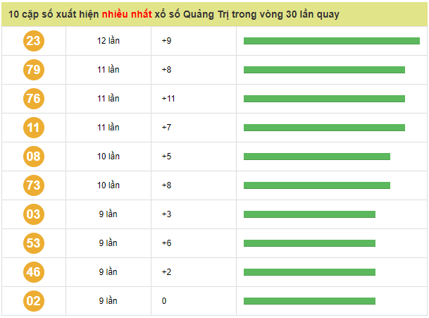 Thống kê kết quả Quảng Trị với các cặp lô tô 2 số về nhiều nhất trong thời gian gần đây: