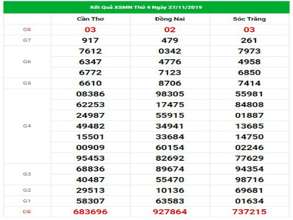 Xem lại kết quả xổ số miền Nam tuần trước ngày 27/11/2019