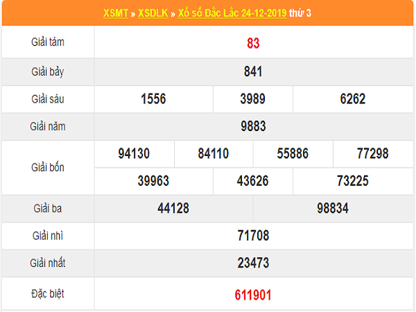 Thống kê xổ số Đắc Lắc ngày 24/12/2019